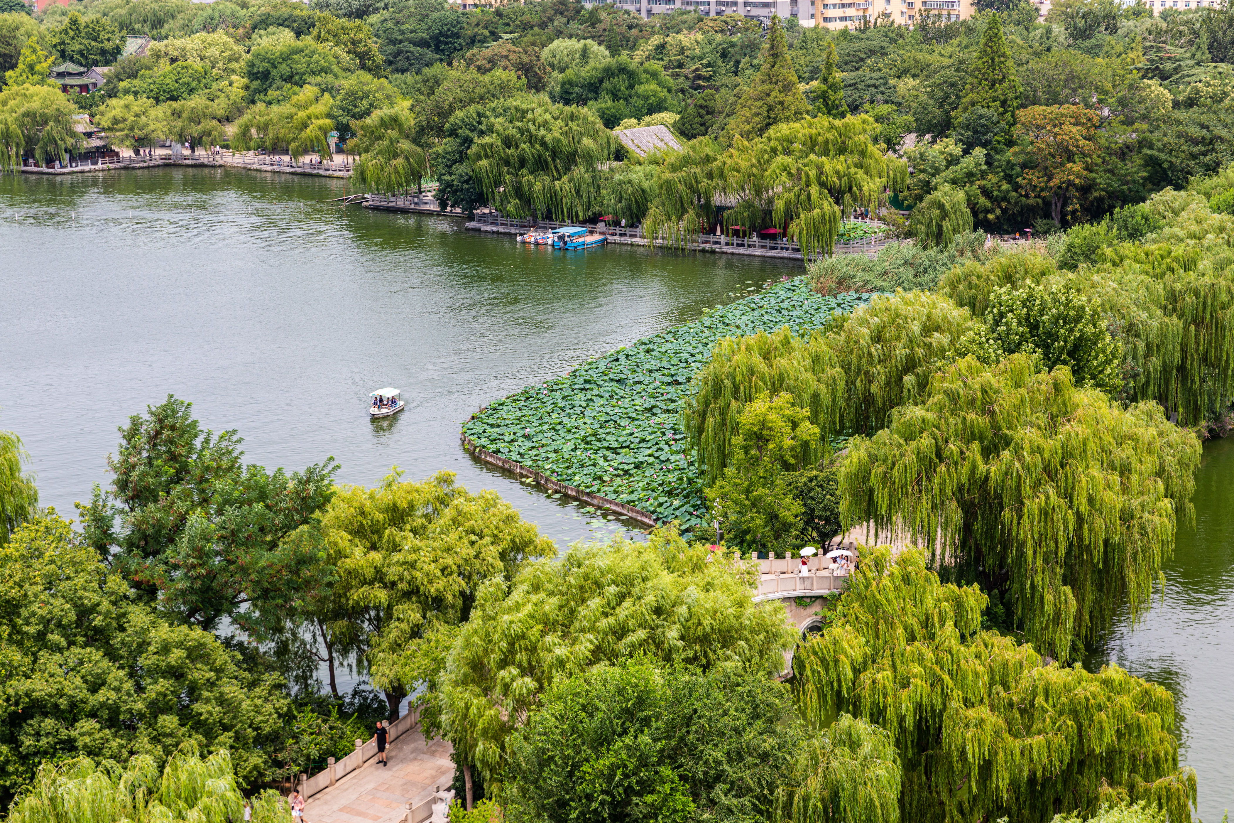 “四面荷花三面柳,一城山色半城湖”,说的就是这里。作为泉城济南的名片,大明湖公园不仅是济南三大名胜之一,也是市民散步休闲的首选。园中亭台楼阁与湖光水色相映,春天杨柳依依,夏天荷花满塘,秋日水天一色,冬日雪落成诗,一年四季都有看头。绕着湖畔走走,或者坐船游湖,都能感受到老济南的悠闲韵味。
